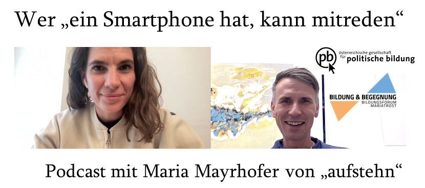 Wie können wir digitale Tools nutzen, um uns als Bürger:innen einzubringen? Wo kann ich politisch mitgestalten? Wie kann ich handfest anpacken, um Veränderungen anzustoßen? Maria Mayrhofer, Geschäftsführerin der Kampagnen-NGO aufstehn, spricht in einem kurzen Podcast mit Florian Traussnig über ihren persönlichen Gerechtigkeitssinn, ihre tägliche Kampagnenarbeit und politische Teilhabe im Superwahljahr.
